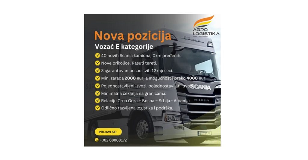 AGRO LOGISTIKA NIKŠIĆ – Vozač E kategorije