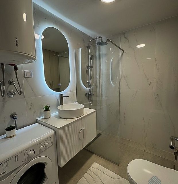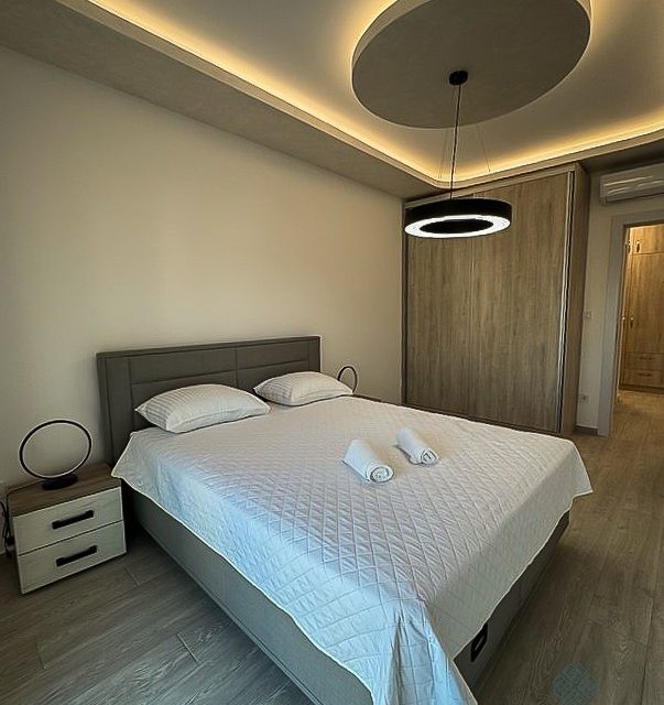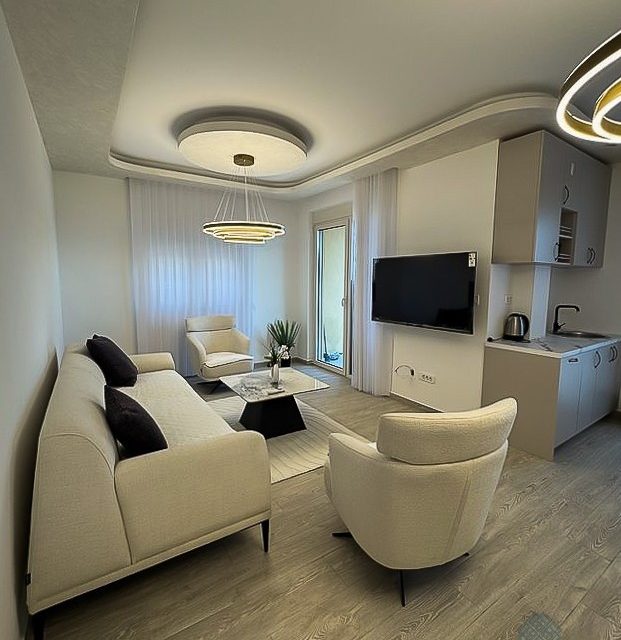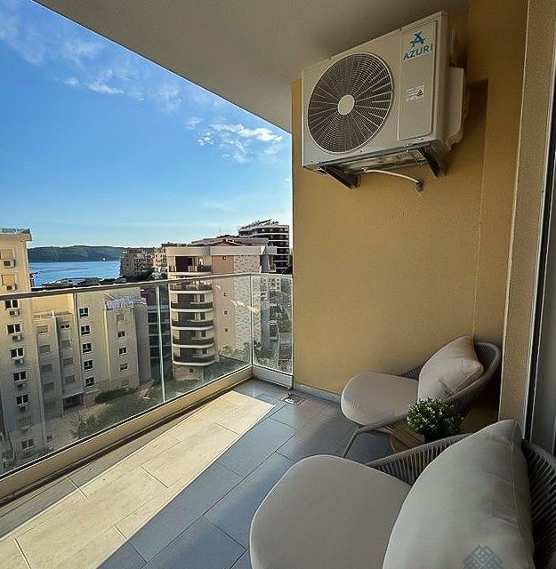 Prodaje se luksuzno namješten dvosoban stan površine 75 m² sa pogledom na more na 7. spratu stambene zgrade Fab Live u Bečićima, Budva.