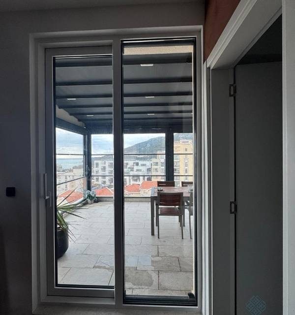 Jedan od najprivlačnijih dijelova stana je velika krovna terasa, koja pruža ne samo panoramski pogled na Jadransko more, već i savršeno mjesto za opuštanje