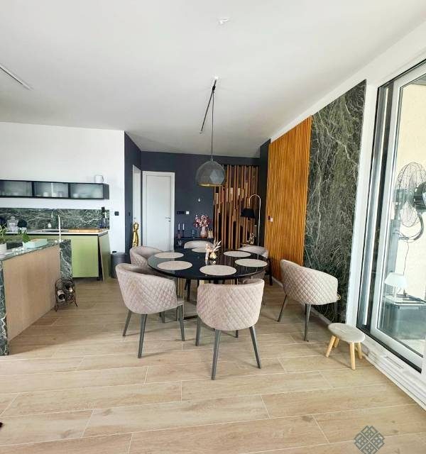 Penthouse je izuzetno kvlitetno opremljen, a isto se ogleda u vrhunskim materijalima i modernom namještaju koji je pažljivo odabran za maksimalnu funkcionalnost i estetiku. Svaka prostorija opremljena je luksuznim komadima namještaja, počevši od dnevnog boravka, pa do sofisticiranih kuhinjskih elemenata, te udobnih i modernih spavaćih kreveta.
