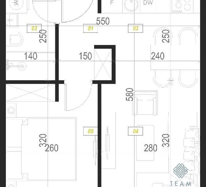 Struktura stana: hodnik, dnevni boravak sa trpezarijom, kuhinja, spavaća soba i kupatilo.