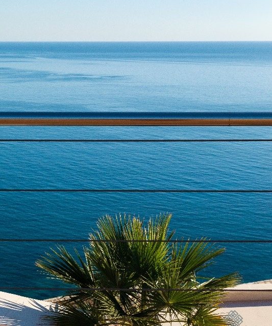 Apartman se nalazi na drugom spratu kompleksa i sastoji se od prostranog dnevnog boravka sa trpezarijom i kuhinjom, 3 spavaće sobe, i velike terase koja gleda na bazen, Stari Grad i ostrvo Sveti Nikola. Panoramski prozori sa jedinstvenim prizorom u dnevnom boravku i spavace sobe odaju utisak utapanja prostora u more i horizont. Moderni harmonični skandinavski enterijer naglašava panoramu mora i planina. Apartman je opremljen svime što vam je neophodno da počnete da živite u njemu, ili da ga izdajete odmah nakon kupovine.
