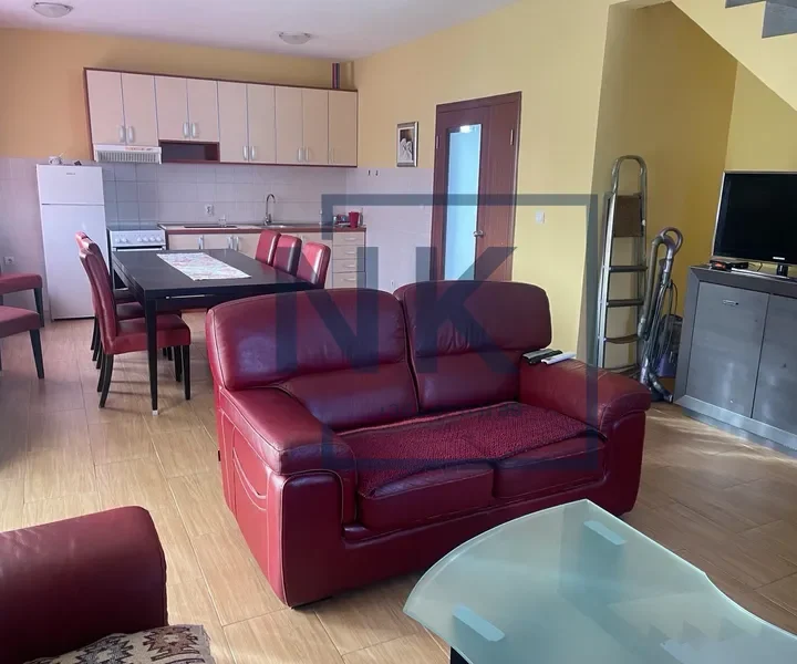 Stan je organizovan na dva nivoa. U donjem dijelu nalaze se dnevni boravak, trpezarija i kuhinja sa izlazom na prostranu terasu, zatim ulazni hodnik, predsoblje i odvojeni toalet. Na gornjoj etaži nalaze se spavaće sobe, kupatilo i dodatni izlaz na veliku terasu, što čini ovaj stan posebno funkcionalnim i udobnim.