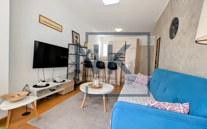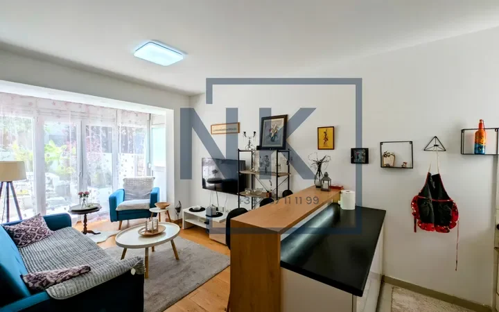 Stan se sastoji od dnevnog boravka povezanog sa trpezarijom i kuhinjom iz koje se izlazi direktno na raskošnu terasu punu zelenila, idealnu za odmor i uživanje u privatnosti. Spavaća soba je odvojena, a tu su i moderno opremljeno kupatilo i funkcionalan hodnik.