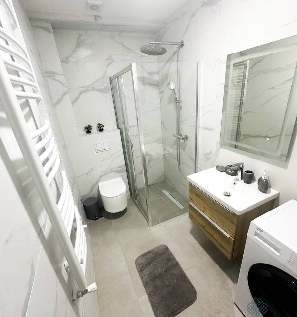 Stan je opremljen lijepim i kvalitetnim namještajem.
