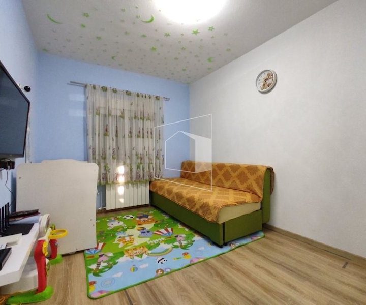 Struktura: ulazni hodnik, prostrani dnevni boravak sa trpezarijom i kuhinjom, tri spavaće sobe, kupatilo, ostava i jedna velika terasa.