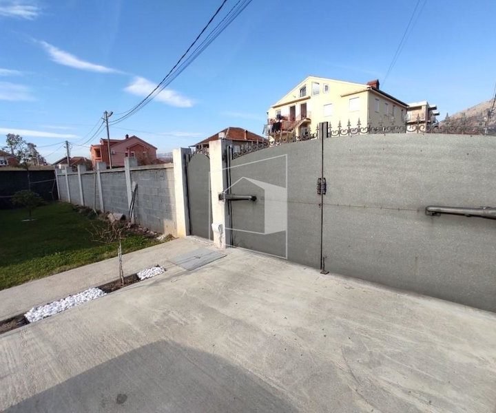 Nalazi se na placu površine 450m2, koji je kompletno ograđen betonskom i kovanom ogradom.