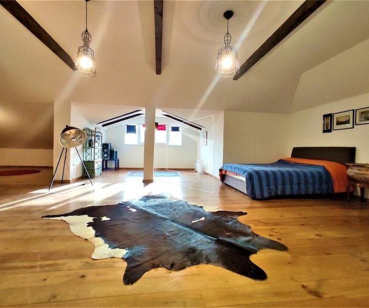 – sprat (potkrovlje): velika galerija koja nije pregrađena, kupatilo.