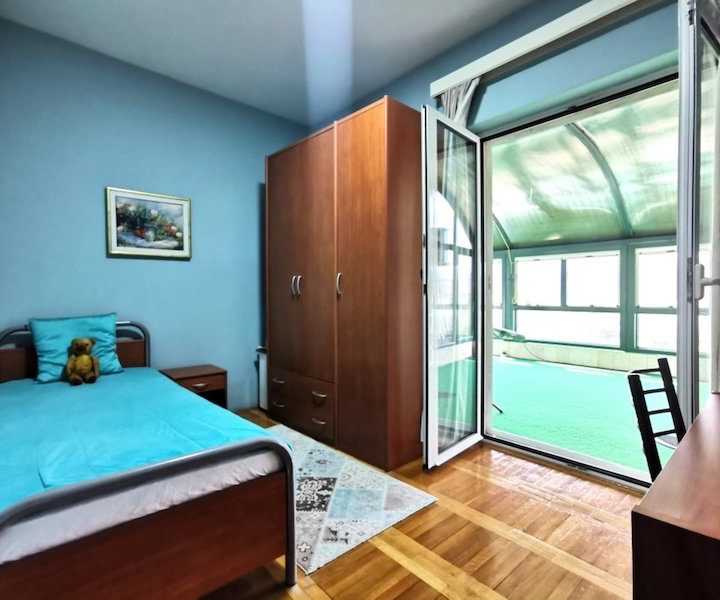Struktura sprata: dnevni boravak, kuhinja, trpezarija, dva kupatila, tri spavaće sobe i dvije terase od kojih je jedna zastakljena površine 32m2.