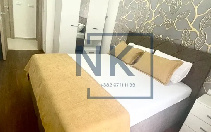 Izdaje se luksuzno opremljen dvosoban stan od 69 m², smješten u prestižnom Master kvartu, na četvrtom spratu stambene zgrade.