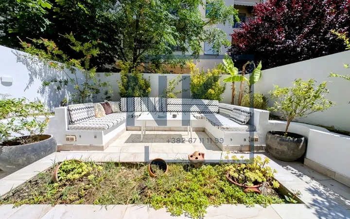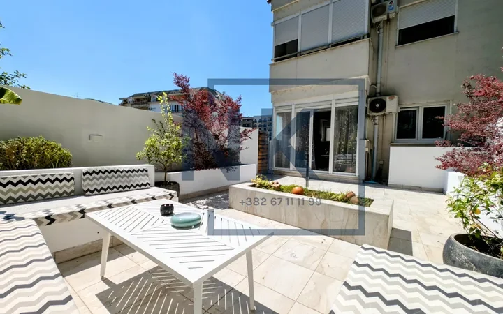 Poseban kvalitet ovog stana čini terasa — lijepo uređena, opremljena svim pratećim sadržajima za boravak na otvorenom, predstavlja pravu malu oazu u urbanom ambijentu.