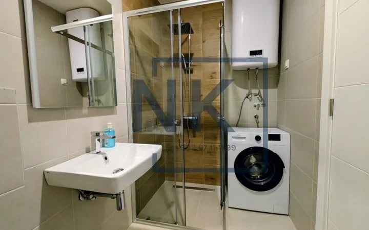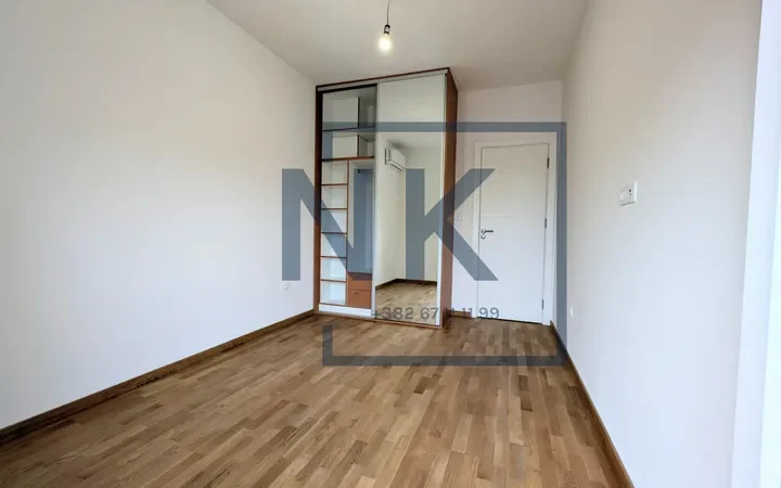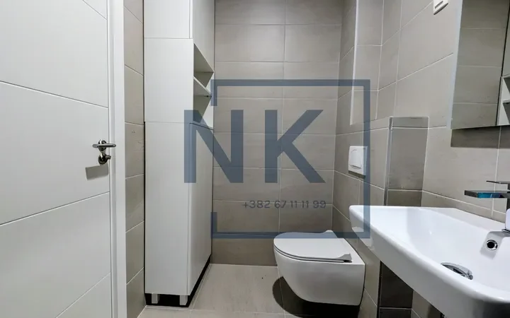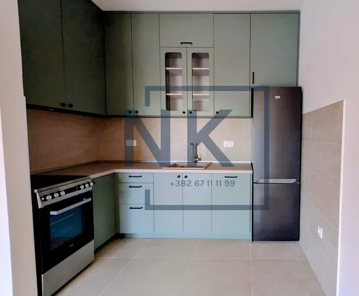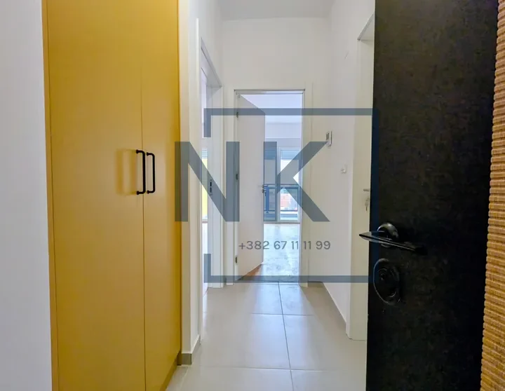 Stan se izdaje polunamješten – opremljen je modernom ugradnom kuhinjom sa svim potrebnim uređajima, kao i plakarima u spavaćoj sobi i kupatilu.