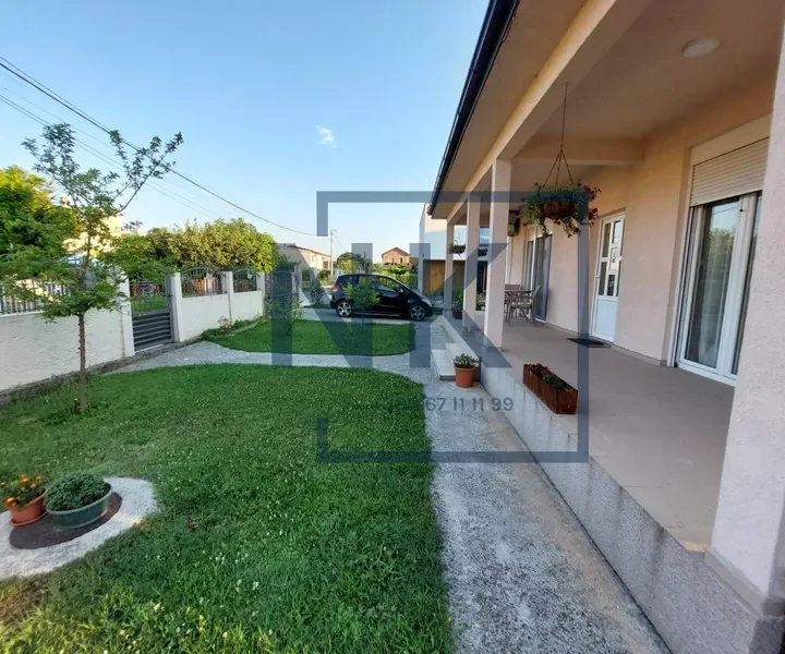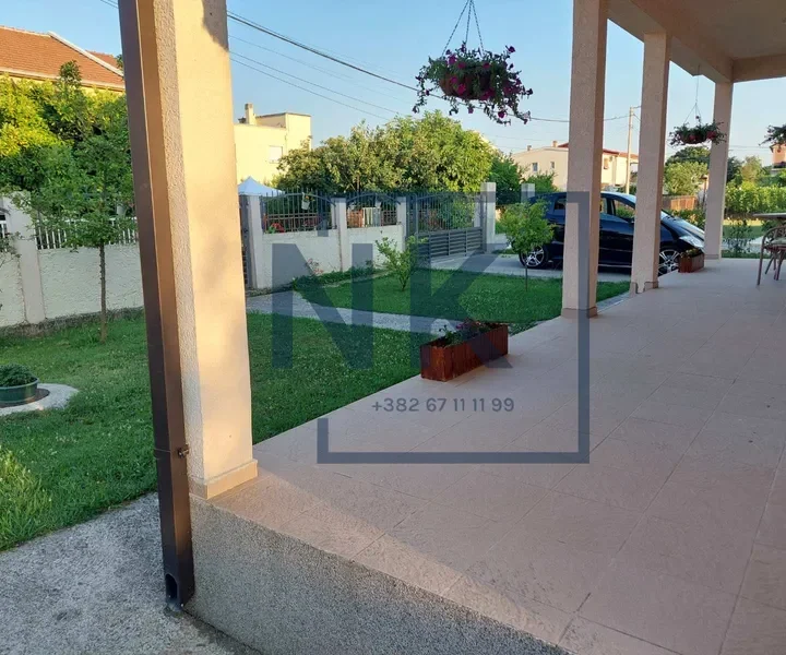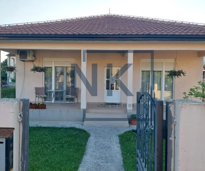 Ova moderno uređena kuća, smještena na placu površine 420m2, nudi udoban i prostran životni prostor. Sastoji se od ulaznog hodnika, dnevne sobe s trpezarijom i kuhinjom, predsoblja, tri spavaće sobe, toaleta, kupatila i terase.