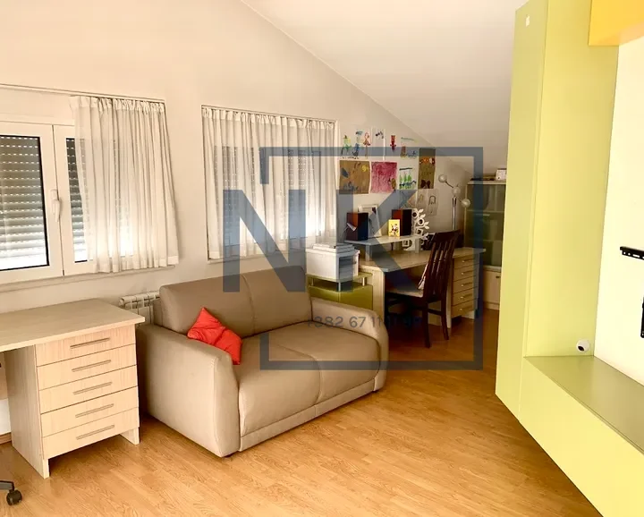 Izdaje se prostrana i luksuzno opremljena kuća u Donjoj Gorici, ukupne površine 240 m², smještena na uređenom placu od 650 m². Ova nekretnina nudi sve pogodnosti modernog doma, uključujući centralno grijanje na pelet, solarne kolektore za toplu vodu, pet klima uređaja, alarmni sistem i video nadzor, pružajući maksimalnu udobnost i sigurnost.