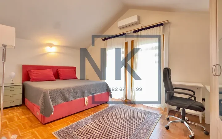 Kuća je kompletno opremljena modernim namještajem i uređajima, uključujući centralno grijanje na struju, klimatizacione jedinice u svim prostorijama i alarmni sistem sa video nadzorom.