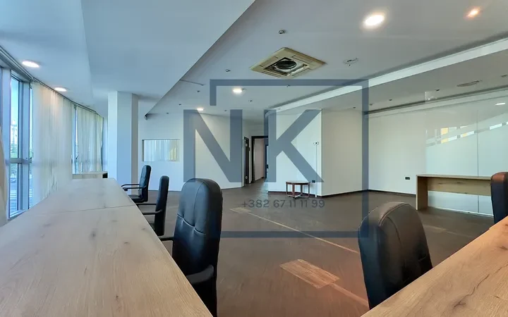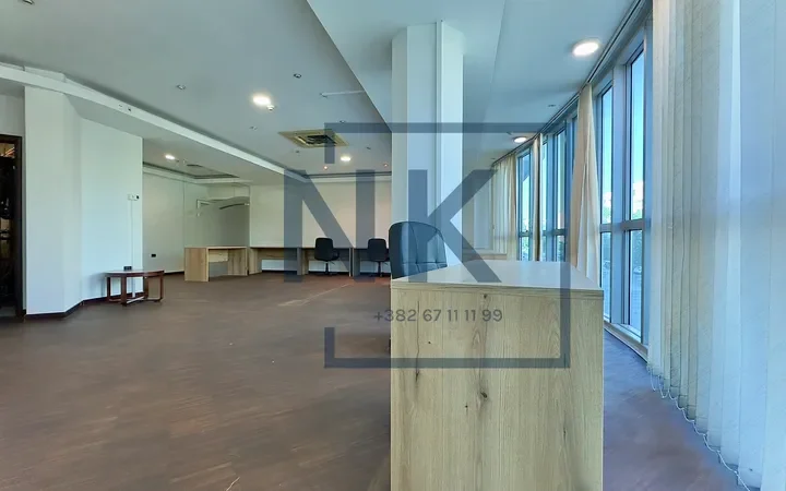 Izdaje se poslovni prostor površine 450 m², smješten na prvom spratu poslovno-stambene zgrade u centralnoj poslovnoj zoni Podgorice, na izuzetno frekventnoj lokaciji, u neposrednoj blizini jedne od najprometnijih raskrsnica u gradu.