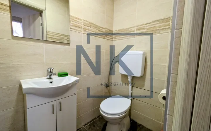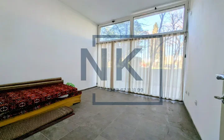 Prizemlje površine 30 m² organizovano je u dvije prostorije, kupatilo, i mokri čvor za čajnu kuhinju. Veliki prozori i izlog daju prostoru otvorenost i prozračnost, a dvostrana orijentacija omogućava prirodno osvjetljenje tokom cijelog dana.