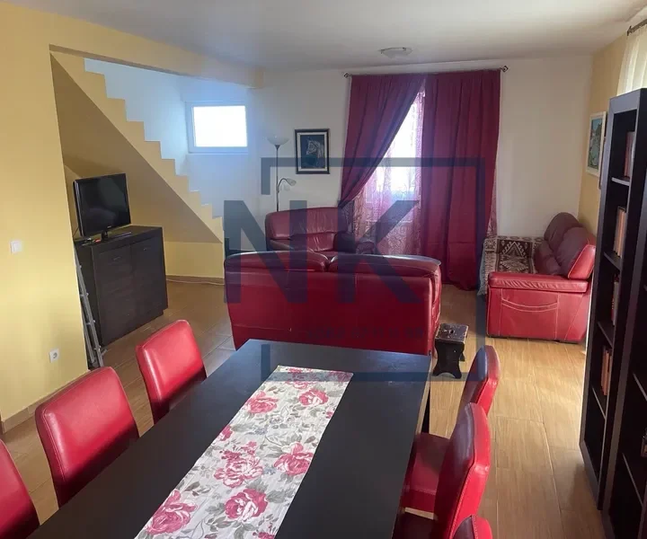 Stan je organizovan na dva nivoa. U donjem dijelu nalaze se dnevni boravak, trpezarija i kuhinja sa izlazom na prostranu terasu, zatim ulazni hodnik, predsoblje i odvojeni toalet. Na gornjoj etaži nalaze se spavaće sobe, kupatilo i dodatni izlaz na veliku terasu, što čini ovaj stan posebno funkcionalnim i udobnim.