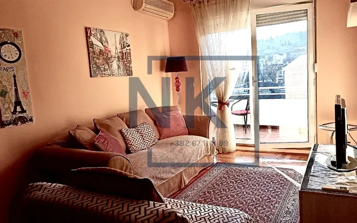 U pitanju je lijepo namještena garsonijera smještena na atraktivnoj lokaciji, u neposrednoj blizini centra, sa prelijepim pogledom na Morača.