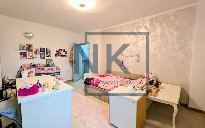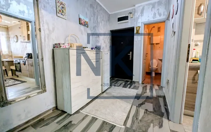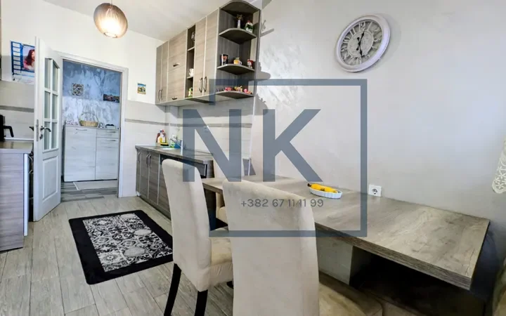 Stan ima funkcionalan raspored i jasno je podijeljen na dnevni i spavaći dio. Ulazni hodnik vodi ka prostranom dnevnom boravku. Kuhinja i trpezarija koncipirane su kao jedna cjelina i imaju izlaz na terasu. Kuhinja je ugradna, prostrana i nudi dosta prostora za odlaganje. U ovom dijelu stana nalazi se još jedna spavaća soba koja takođe ima izlaz na istu terasu, kao i mali WC.