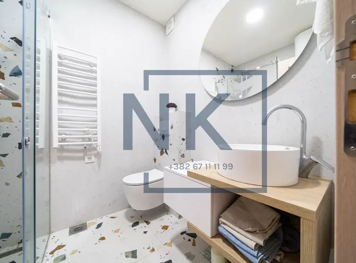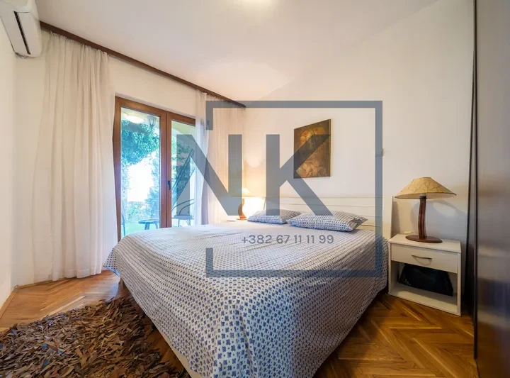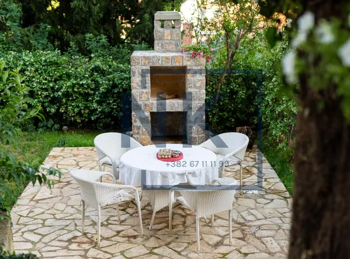 Stan je kompletno klimatizovan, opremljen modernim i elegantnim namještajem, a svaki detalj je pažljivo biran radi maksimalne udobnosti. Dvorište je kultivisano, pruža privatnost i ima nekoliko zona za uživanje, uključujući prostor za roštilj.