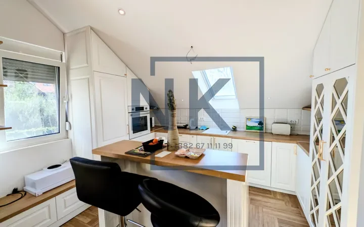 Strukturu stana čini prostrani dnevni boravak povezan sa trpezarijom i kuhinjom u otvoren koncept, koji prostoru daje dodatnu širinu i svjetlost. Poseban akcenat daje galerija smještena u potkrovlju, sa mogućnošću dodatnog uređenja prema potrebama zakupca. Pored toga, stan raspolaže sa tri odvojene sobe: radnom sobom, dječijom sobom i velikom spavaćom sobom koja ima sopstveno kupatilo i garderober. U stanu se nalazi i drugo kupatilo, kao i praktična ostava.