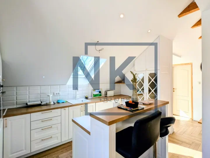 Stan se nalazi na prvom spratu u sklopu kuće i posjeduje zaseban spoljašnji ulaz, što budućim zakupcima pruža potpunu privatnost i osjećaj kao da su u posebnoj stambenoj jedinici. Izdaje se namješten i spreman je za useljenje.