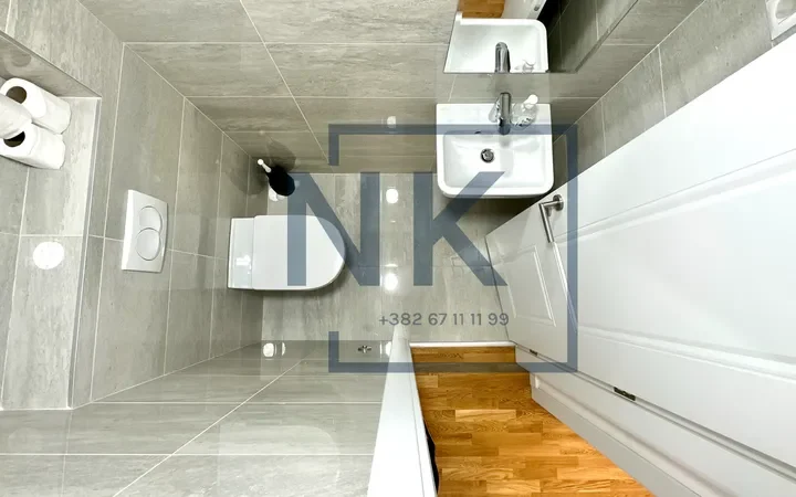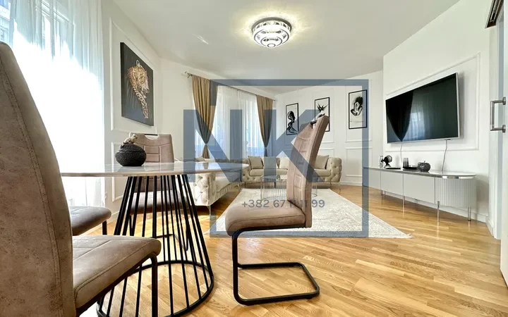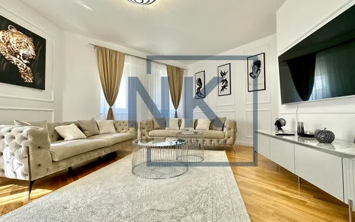Izdaje se luksuzno namješten trosoban stan površine 95m² na prvom spratu stambene zgrade sa liftom.