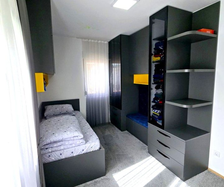 Komforan, raskošan stan, sređen do najsitnijih detalja, jedinstven za porodicu. Kompletan namještaj u stanu je luksuzan, kuhinja vrhunskog kvaliteta, rađena po mjeri.