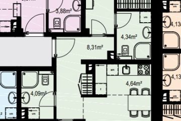 Stan ima veliki dnevni boravak sa trpezarijom, dvije spavaće sobe i jedno kupatilo, a zahvaljujući velikim dimenzijama prozorskih okvira, stan je izuzetno svijetao i topao. Parking je obezbijeđen na spoljašnjem parkingu iza zgrade, uz pristup karticom.