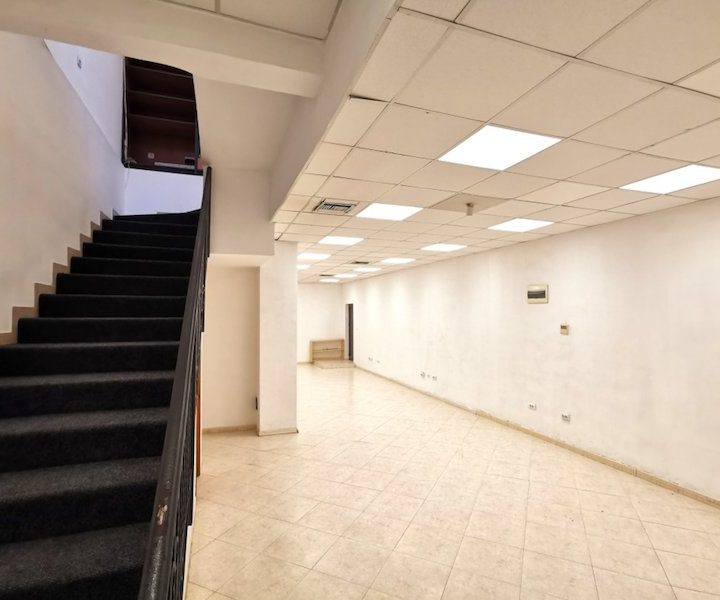 Prostor je podijeljen u dva nivoa: prizemlje 34m2 i suterenski dio 86m2, a povezani su unutrašnjim stepenicama.