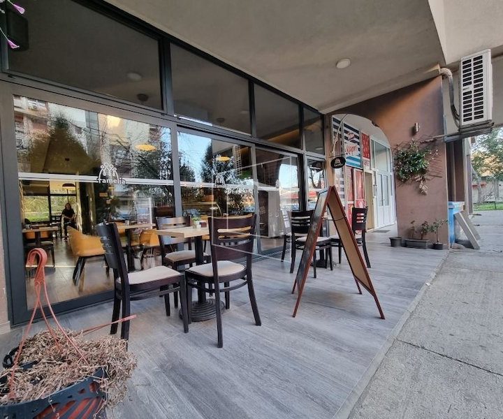 Prizemlje 159m2: kuhinja, šank, jedna cjelina, kupatilo sa dva mokra čvora, dvije terase (prednja i zadnja strana prostora).