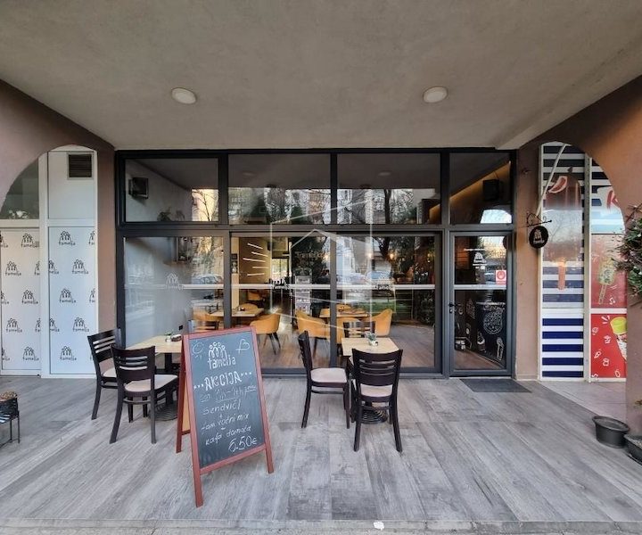Poslovni prostor nalazi se na prizemlju stambene zgrade. Sastoji se od prizemlja i suterena.