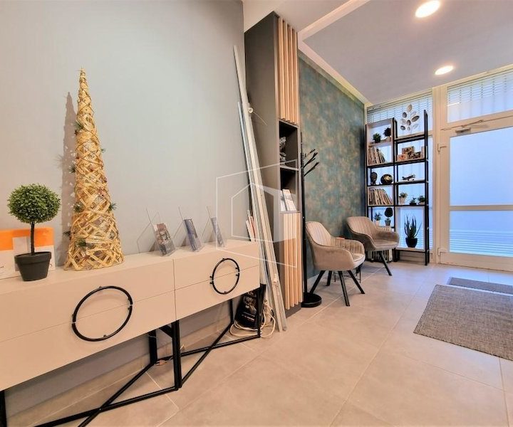 Prodaje se opremljen sa kompletnim enterijerom ( radni stolovi, stolice, komode, uređaji (klima, frižider), tep ormar-internet, kamere).