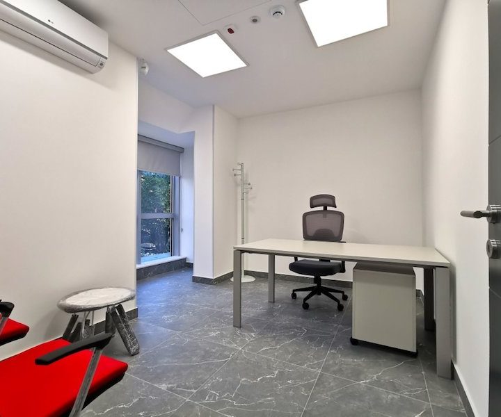 Koncipiran kao 4 kancelarije, 2 toaleta i čajnom kuhinjom koja će biti opremljena u dogovoru sa zakupcem.