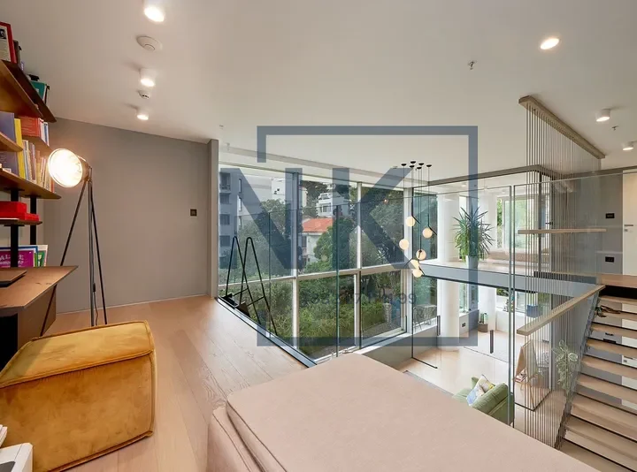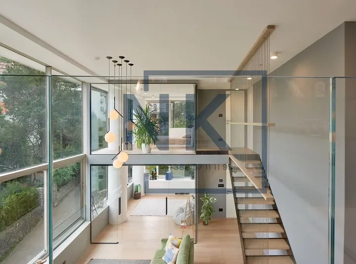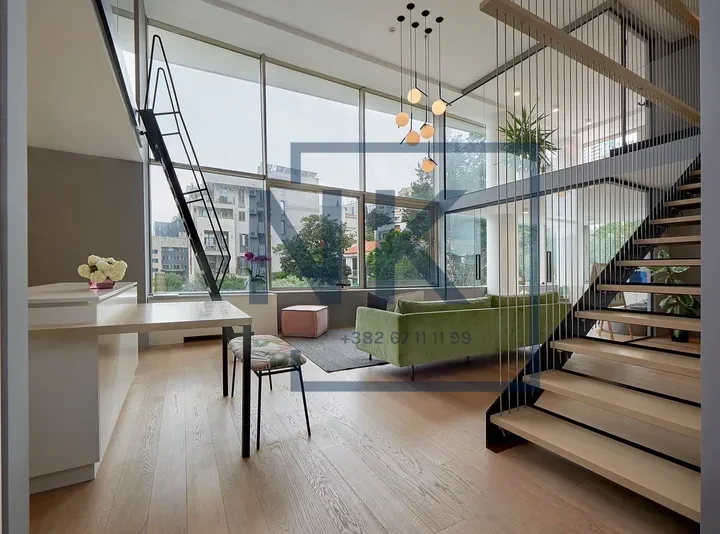 Prostor je izuzetno funkcionalno i pažljivo osmišljen, a sastoji se od dvije spavaće sobe, dva kupatila, prostrane studio kuhinje, garderobera i galerije koja može služiti kao biblioteka ili radni kutak.