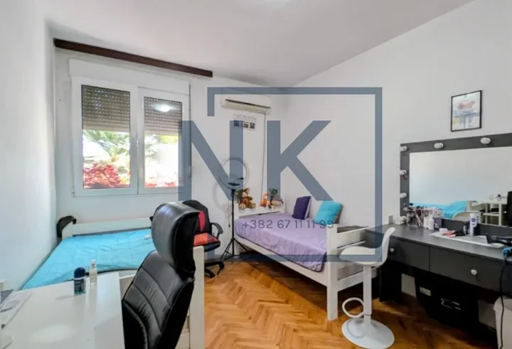 Prodaje se polunamješten, sa ugradnom kuhinjom i ugradnim plakarima. Stan je djelimično renoviran – zamijenjena je stolarija, a kupatilo je kompletno renovirano zajedno sa vodovodnim instalacijama.
