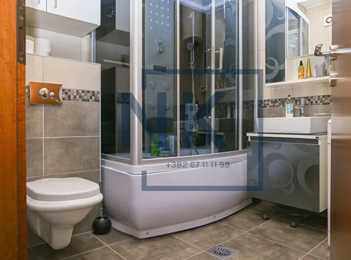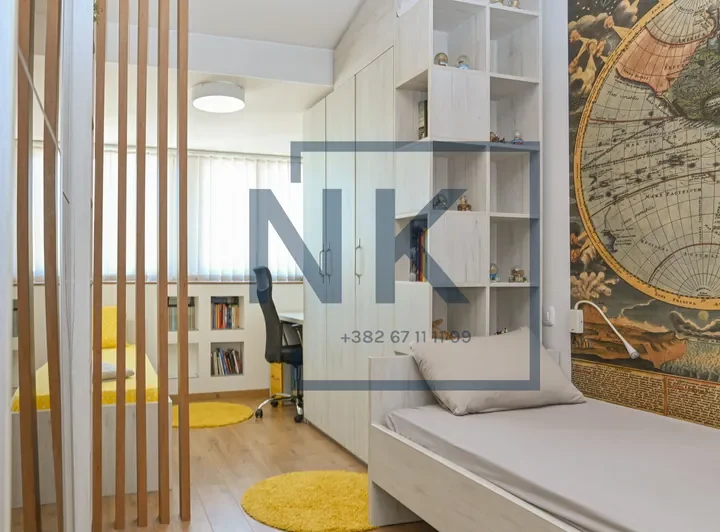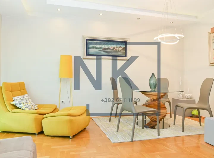 Enterijer stana odlikuje elegancija i kvalitet, sa pažljivo odabranim namještajem, vrhunskom stolarijom i odličnom završnom obradom. Prostorije su prozračne, osvijetljene prirodnom svjetlošću, pružajući topao i prijatan ambijent.