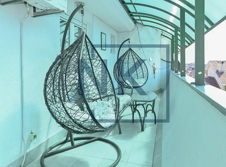 Stan karakteriše odličan raspored prostorija: ulazni hodnik, prostrana dnevna soba sa trpezarijom, potpuno opremljena moderna kuhinja, dvije velike spavaće sobe, kupatilo, gostinjski toalet, ostava i dvije terase, od kojih je jedna zatvorenog tipa.