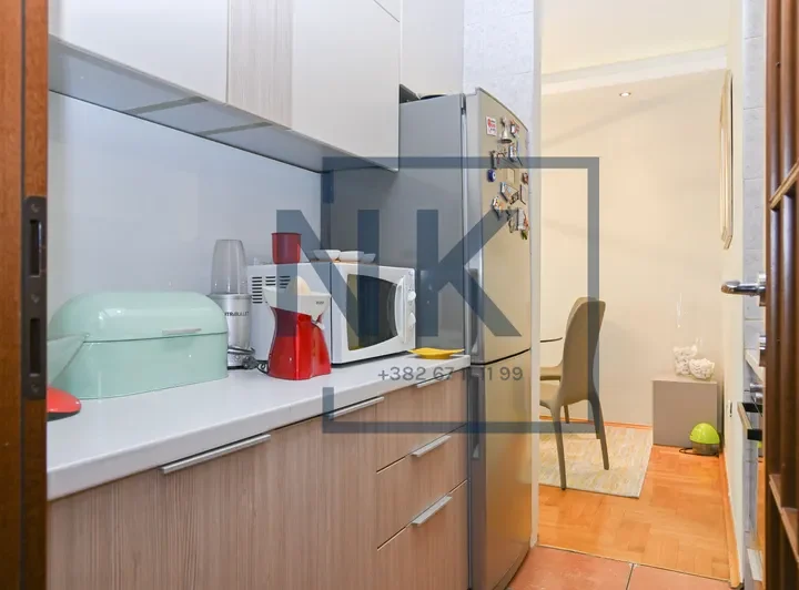 Stan karakteriše odličan raspored prostorija: ulazni hodnik, prostrana dnevna soba sa trpezarijom, potpuno opremljena moderna kuhinja, dvije velike spavaće sobe, kupatilo, gostinjski toalet, ostava i dvije terase, od kojih je jedna zatvorenog tipa.
