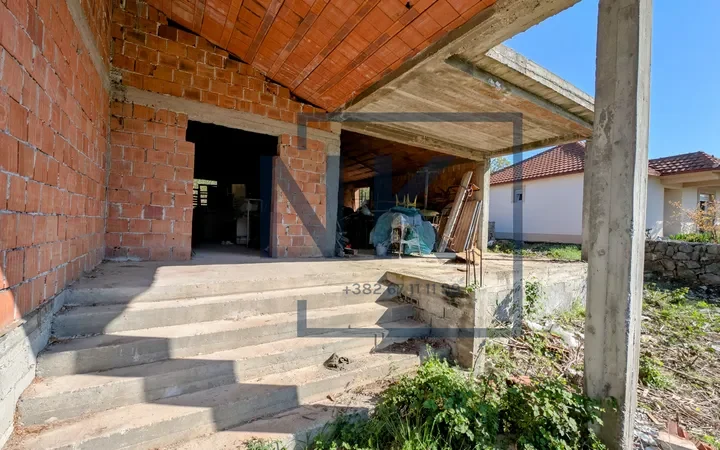 Kuća je pokrivena – krov je završen, a objekat je koncipiran kao trosoban stan sa garažom. Dovedeni su voda i struja, što dodatno olakšava nastavak radova i useljenje.