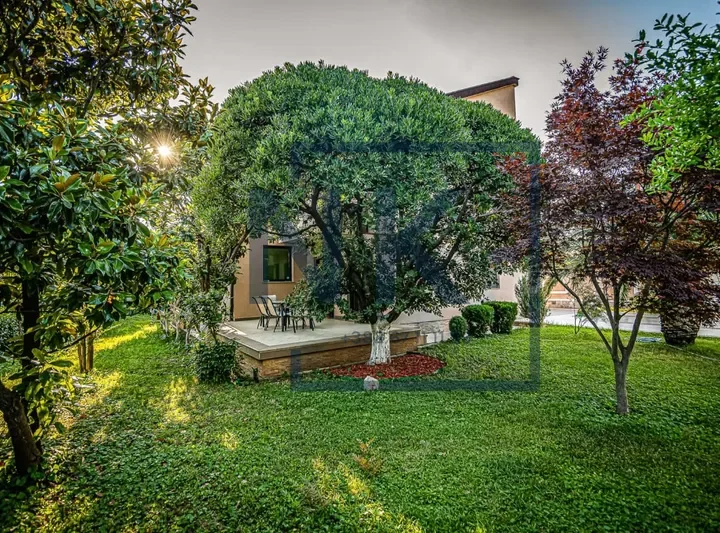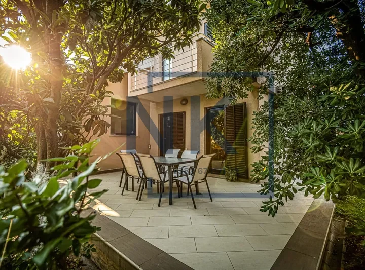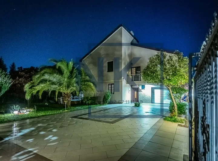 Eksterijer: Kuća galerijskog tipa prostire se na 280 m2 smještena na parceli od 1080 m2. Ograđeni vrt, ukrašen dekorativnim rastinjem i južnim voćem, pruža potpuni mir i privatnost. Uživajte u zelenilu i prostranom dvorištu koje je savršeno za opuštanje.