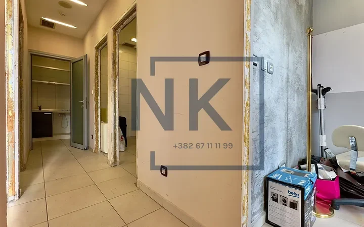 Prostor je pregrađen u više prostorija, ima kuhinju i toalet, a ranije je korišćen kao kozmetički salon.