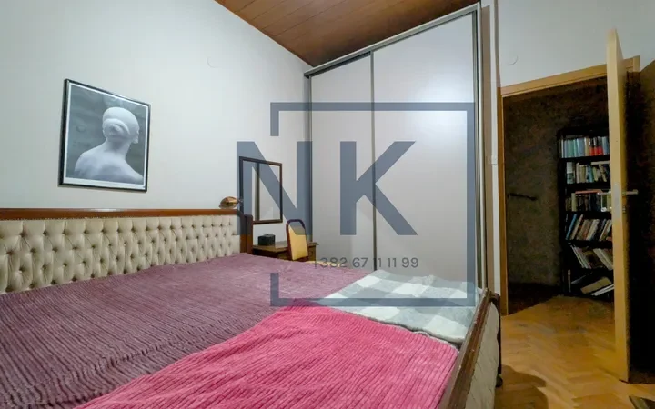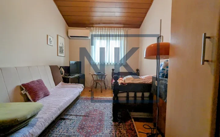 Spavaći blok je odvojen, čine ga tri sobe, od kojih dvije imaju svoje terase, te kupatilo. Stan dodatno ima i mali WC, ostavu i dovoljno prostora za odlaganje. Kupatilo i WC su renovirani, a stan se prodaje namješten, spreman za useljenje.