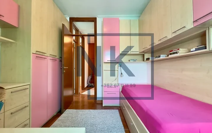 Struktura stana je idealno organizovana – dnevna zona obuhvata veliki dnevni boravak sa trpezarijom, odvojenu kuhinju, toalet i ulazni hodnik sa ugradnim plakarima, dok spavaći blok čine tri komforne spavaće sobe, kupatilo i dodatni hodnik sa plakarima.