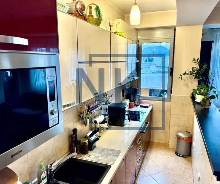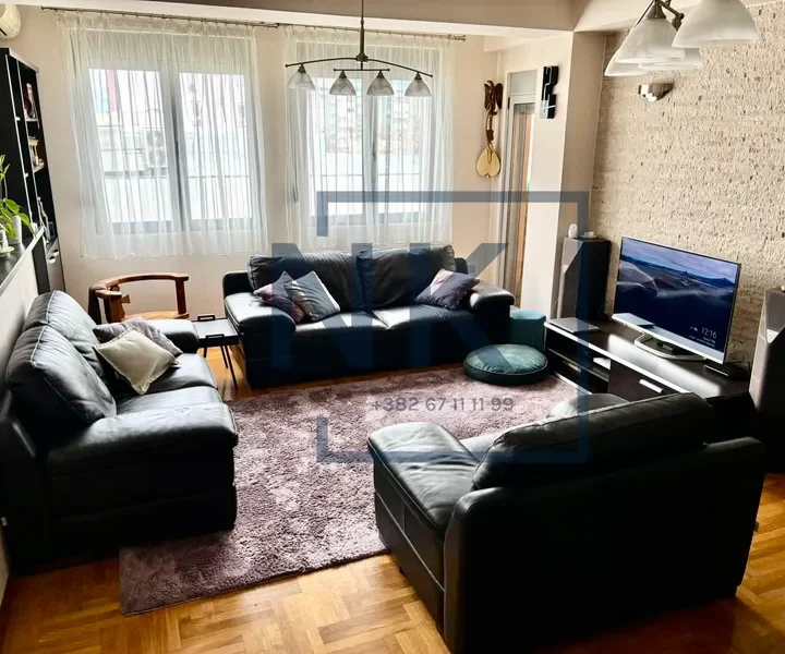 Stan je funkcionalno i veoma komforno organizovan: dnevni boravak, trpezarija i kuhinja čine jednu cjelinu, sa izlazom na terasu, dok su spavaće sobe fizički odvojene. U stanu se nalaze kupatilo i dodatni toalet. Orijentisan je na sjevernu stranu, izuzetno je prostran, očuvan i odmah useljiv.