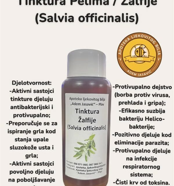 ↪️Osobine: Aktivni sastojci žalfije djeluju antibakterijski i protivupalno, površinski skupljaju tkivo pa se upotreba preporučuje za ispiranje kod upale sluzokože usta i grla. Takođe, aktivni sastojci povoljno djeluju na poboljšavanju apetita, takođe protivupalno dejstvo, protiv prehlada i gripa, protiv Helico- bakterije i crijevnih parazita, protiv zapaljenja pluća, kod infekcija upala grla, čisti krv od toksina.✅️