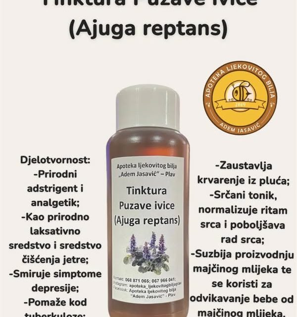 ↪️Osobine: Ajuga reptans je adstrigent i analgetik. Biljka liječi rane, koristi se još i kao lako laksativno sredstvo i sredstvo koje čisti jetru. Ajuga smiruje simtome depresije. Čaj pomaže kod tuberkuloze i kod krvarenja iz pluća. Odavno je priznata u zapadnoj medicini kao srčani tonik. Ajuga može da normalizuje ubrzan ritam srca i da poboljša funkciju slabog srca. Osim toga, koristi se i kada majke žele da odviknu bebe od sisanja, pošto suzbija prizvodnju majčinog mlijeka.✅️