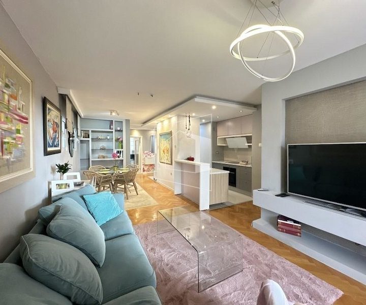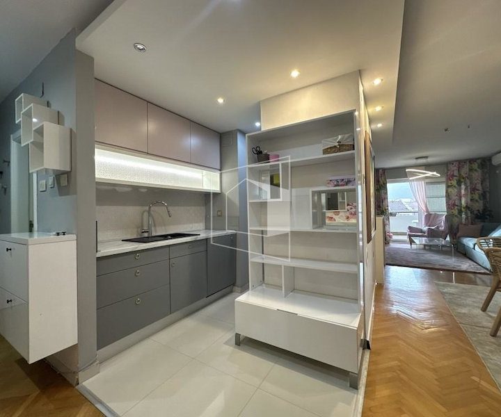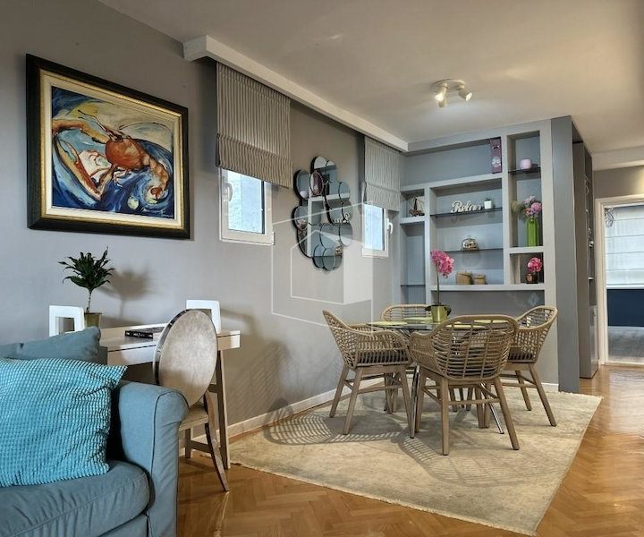Moderno opremljen, komforan, sa dosta iskorištenog prostora. Prodaje se kompletno opremljen ( bez umjetničkih slika).